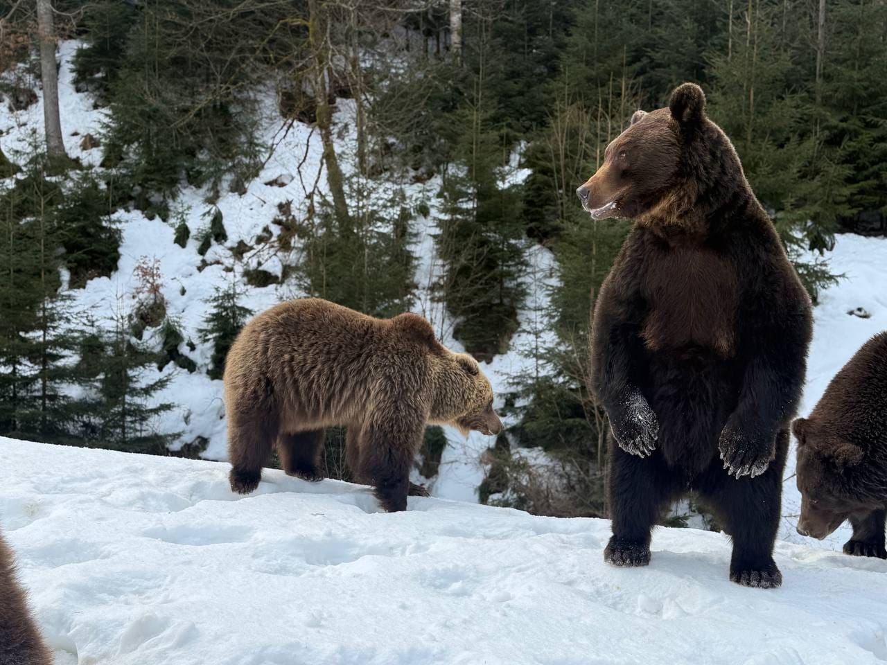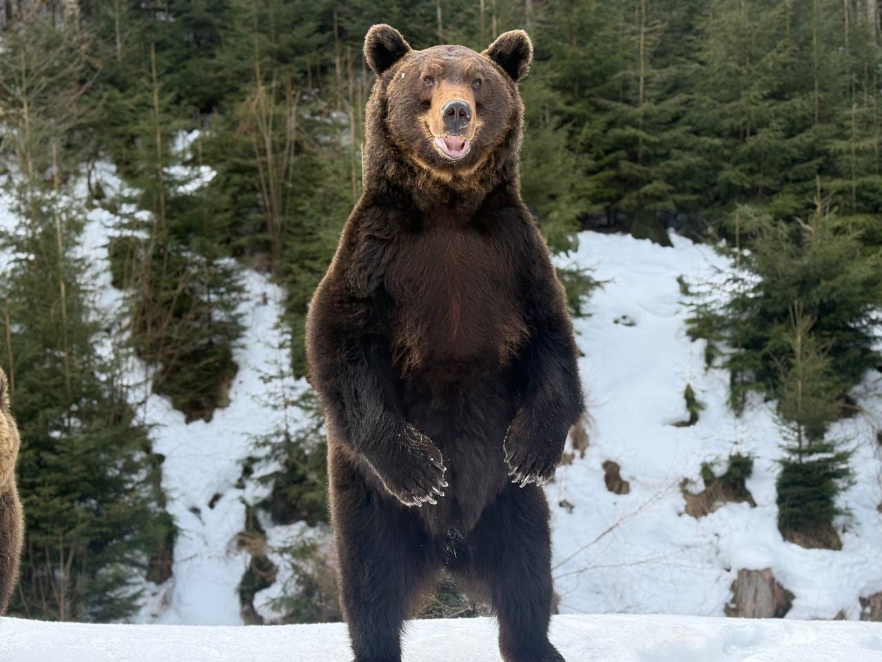 Сьогодні зима ще тримає гори в прохолодних обіймах, однак у Реабілітаційному центрі бурого ведмедя Національного природного парку «Синевир» уже відчувається подих весни. Частина мешканців центру почала поступово виходити зі стану зимової сплячки — цього року вона виявилася коротшою та менш глибокою, ніж зазвичай.
